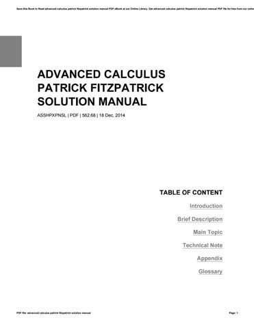 Download solution manual advanced calculus by patrick fitzpatrick mobipocket Google eBookstore